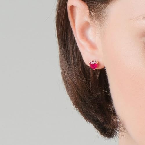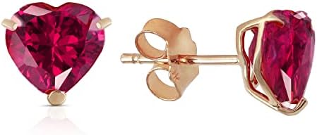 Galaxy Gold GG 14K Solid Yellow Gold Lab Grown Heart Ruby Necklace and Stud Earrings Set Grade AAA