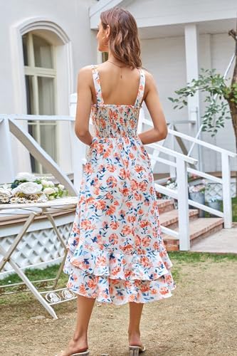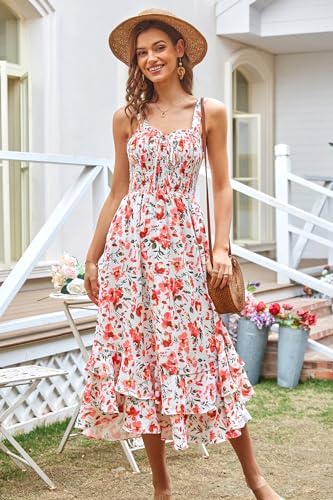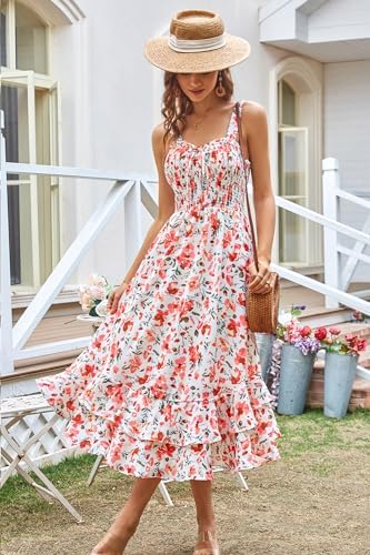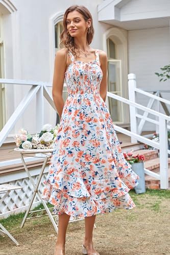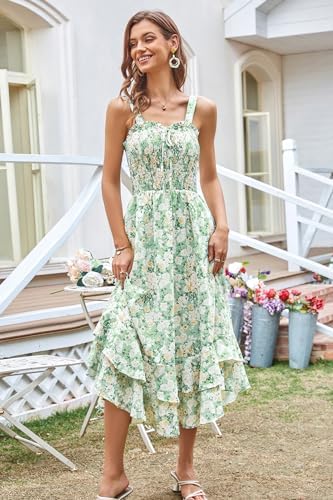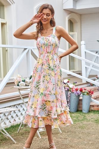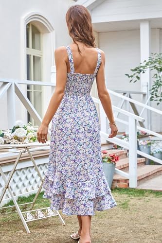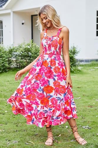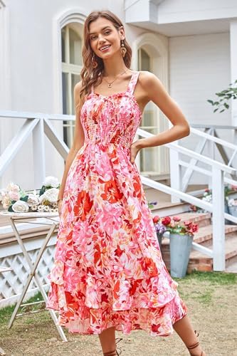 GRACE KARIN Women's 2024 Summer Floral Boho Dress Square Neck Strapped Swing A Line Beach Long Maxi Dress