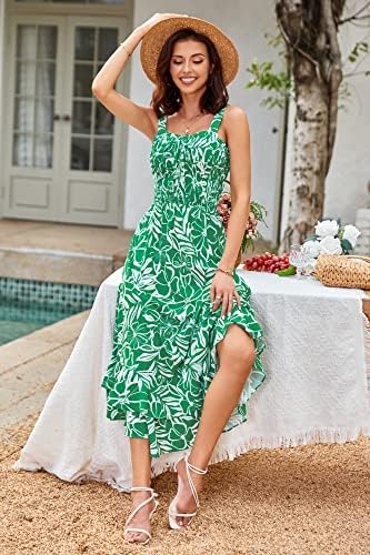 GRACE KARIN Women's 2024 Summer Floral Boho Dress Square Neck Strapped Swing A Line Beach Long Maxi Dress
