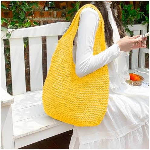 Hand-woven Soft Large Straw Shoulder Bag Boho Straw Handle Tote Retro Summer Beach Bag Rattan Handbag