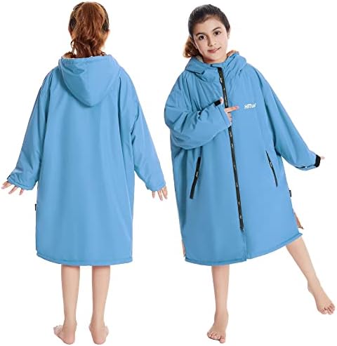 Hiturbo Warm Kids Swim Parka: Waterproof Changing Robe - Oversize Swimming Coat - Hooded Surf Poncho - Thick Lining (7-14Y)