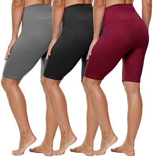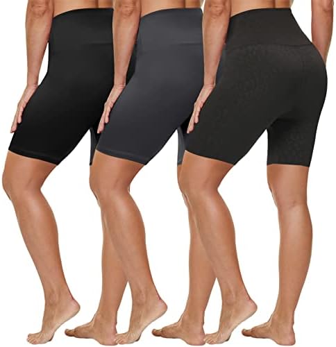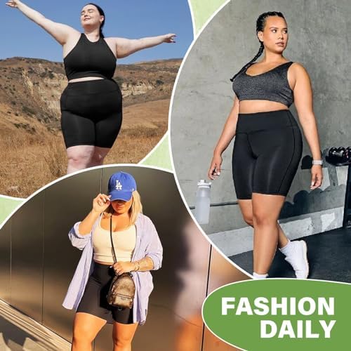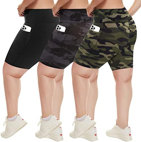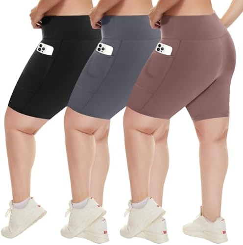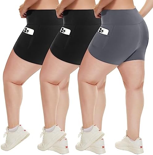 HLTPRO 3 Pack Plus Size Biker Shorts with Pockets for Women (S-4XL)- 8"/5" High Waist Tummy Control Shorts for Yoga