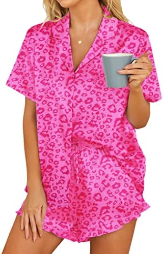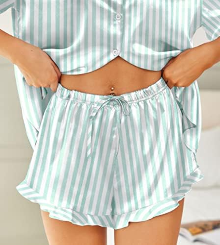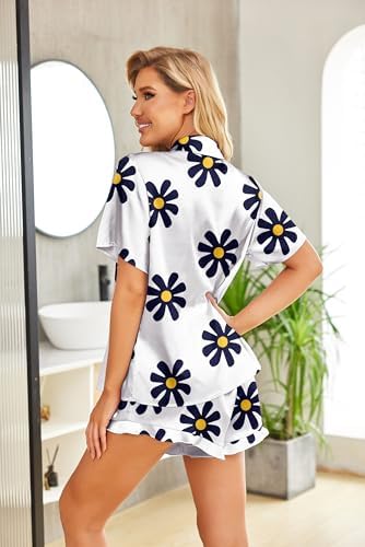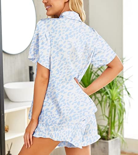 Hotouch Womens Button Down Short Sleeve Stain Pajamas Ruffled Short Set