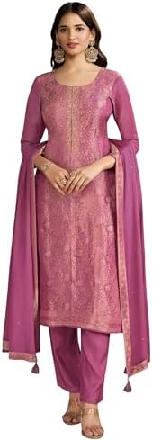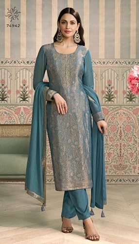 Indian Fancy Fabric Hand Emboridery Work Straight Suit 15593