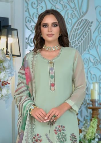 Indian Women's soft organza Embroidery Work Straight Suit 15234