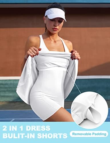 IUGA Womens Tennis Dress Built in Shorts & Bra Adjustable Straps Exercise Workout Dress with Pockets Golf Athletic Dresses