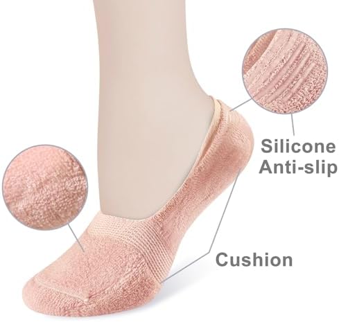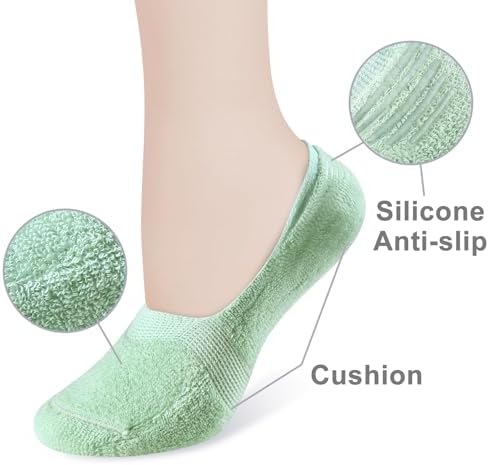 Leotruny 6 Pairs Unisex Thick Cushion Athletic Cotton Non Slip Low Cut Flat Liner No Show Socks