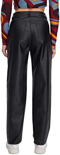 MakeMeChic Women's High Waist Pockets Straight Leg Jeans Leather Look Pants
