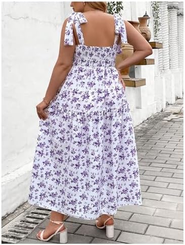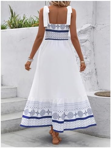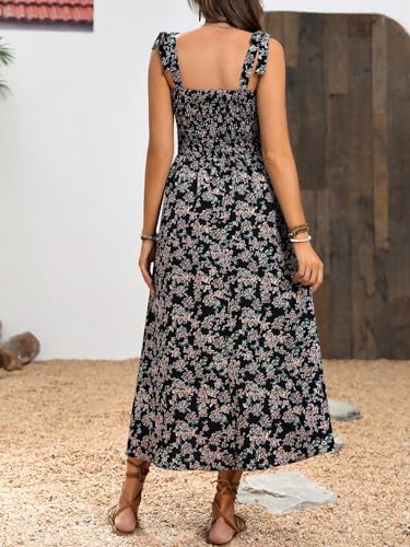 MakeMeChic Women's Summer Boho Dress Casual Floral Print Spaghetti Strap Square Neck Long Maxi Dress Beach Sun Dress