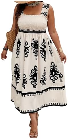 GRACE KARIN Women's 2024 Summer Floral Boho Dress Square Neck Strapped Swing A Line Beach Long Maxi Dress