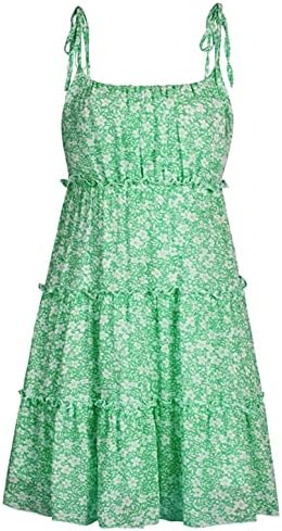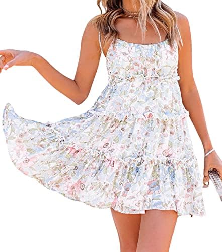 Mansy Womens 2024 Summer Floral Mini Dress Boho Flowy Skater Dresses Short Sleeveless Ruffle Spaghetti Strap Dress