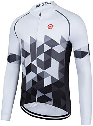 Men's Cycling Jersey Long Sleeve Biking Shirt with 3+1 Zipper Pocket Breathable Quick Dry Bicycle Jersey