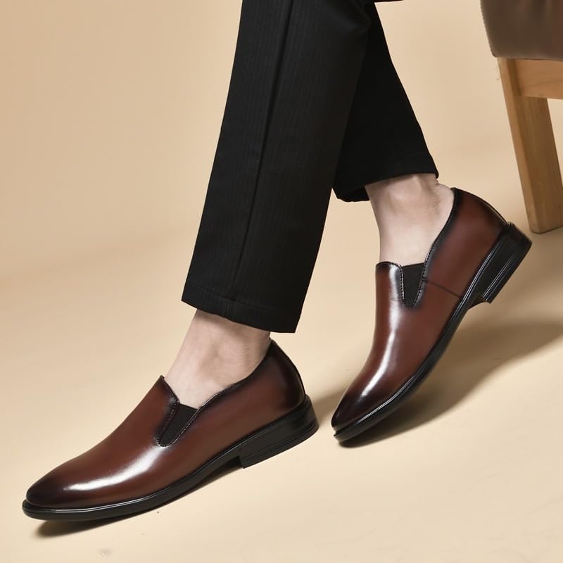 Men White Dress Shoes Lace Up Genuine Leather Oxfords Shoes Fashion Classic Pointed Toe Low Top Leather Dress Shoes(Brown,7.5)