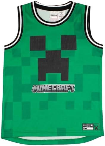 Minecraft Creeper Boys Basketball Sleeveless Shirt & Shorts, 2-Piece Outfit Set for Kids