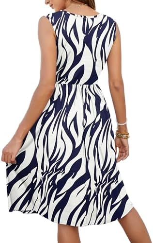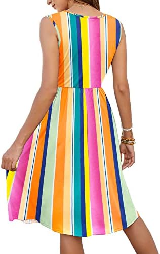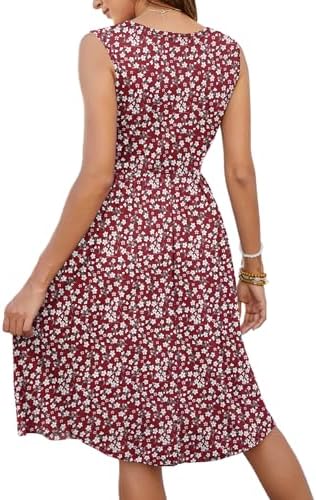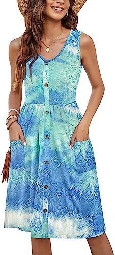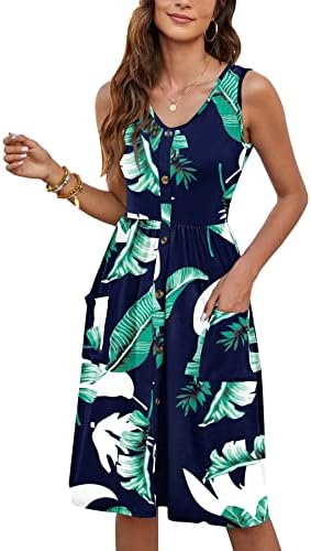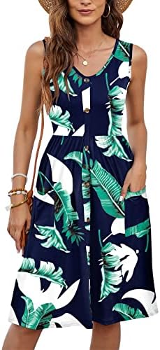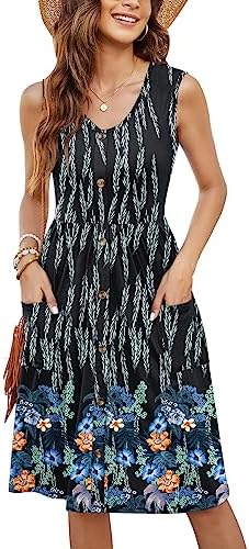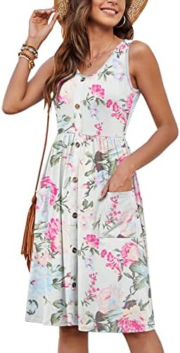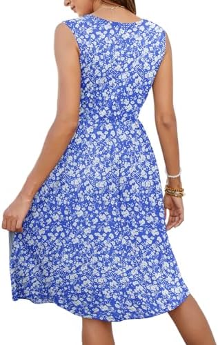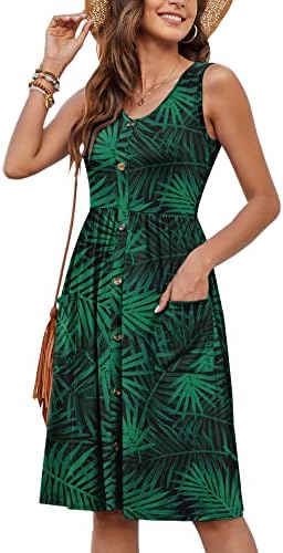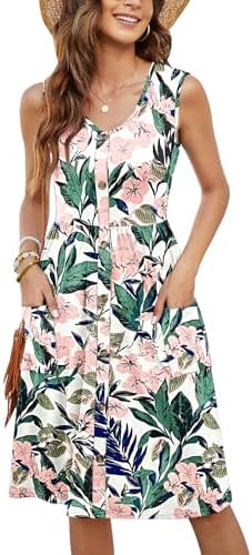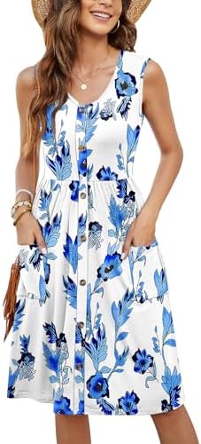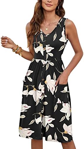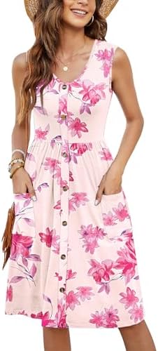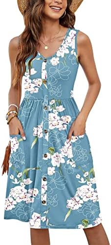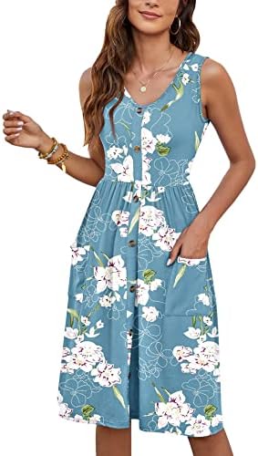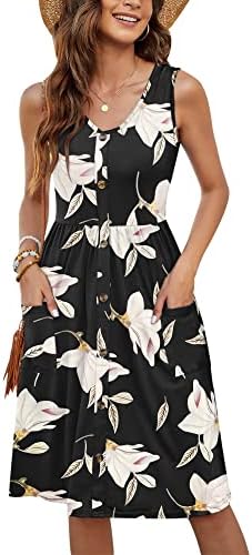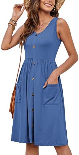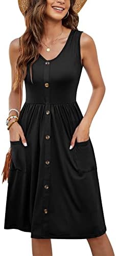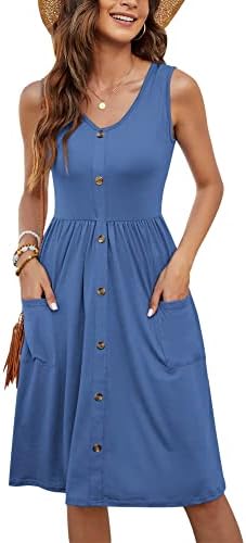 Women Summer Dresses Sleeveless Loose Swing Button Down Midi Dress with Pockets