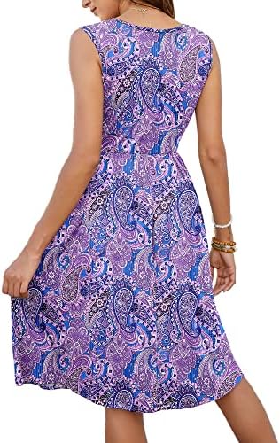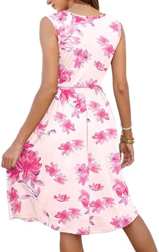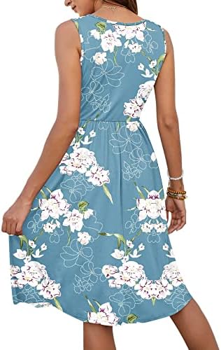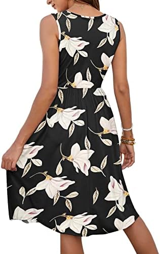 Summer Dresses for Women Beach Boho Sleeveless Vintage Floral Flowy Pocket Tshirt Tank Sundresses