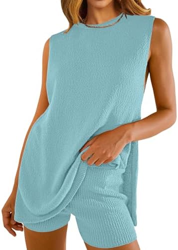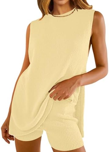 NENONA Women's Summer Sleeveless Sweater Sets Casual Knit Tunic Tops and Shorts 2 Piece Outfits