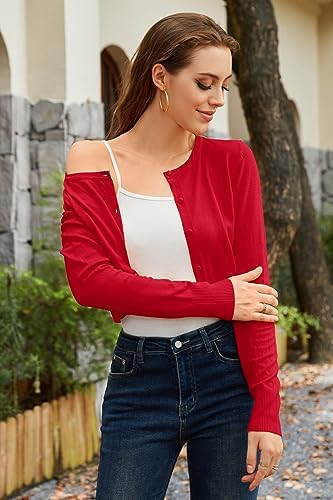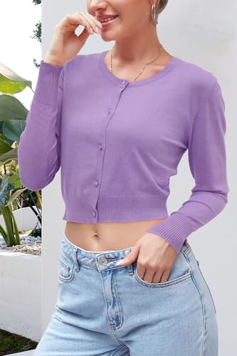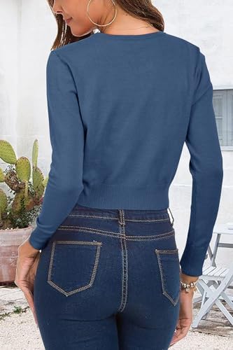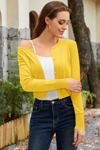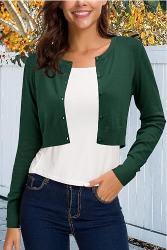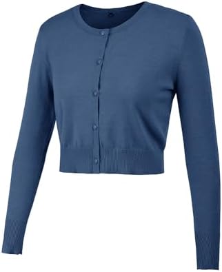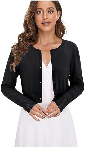 Newshows Cropped Cardigan Sweaters for Women 2024 Crew Neck Button Down Open Front Knit Bolero Shrugs