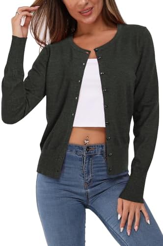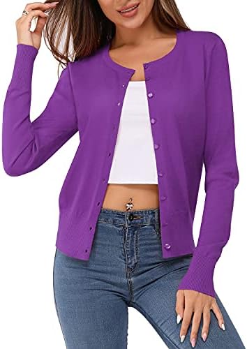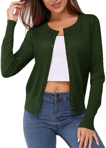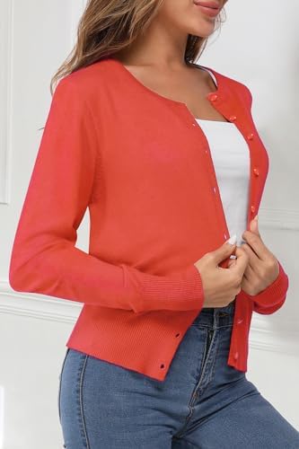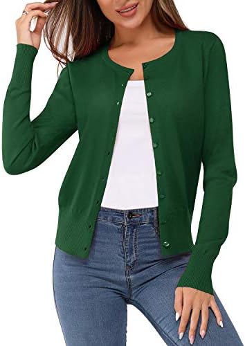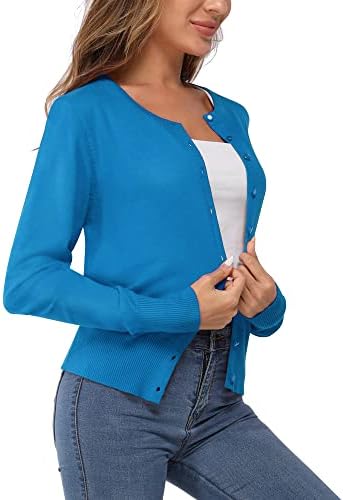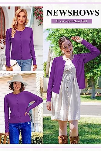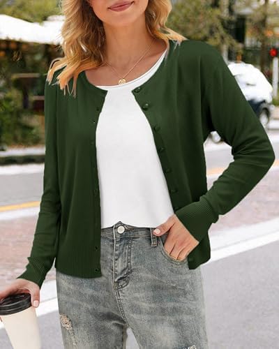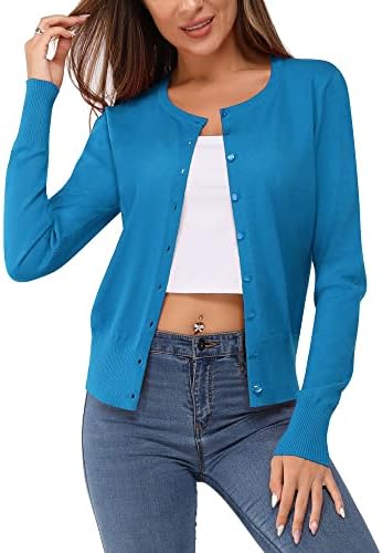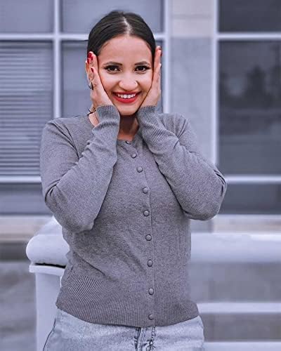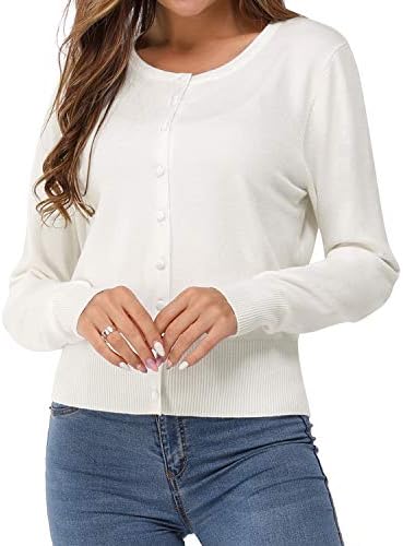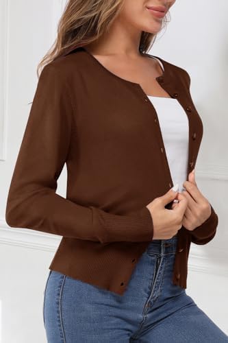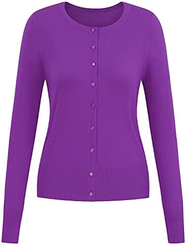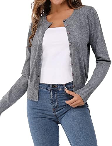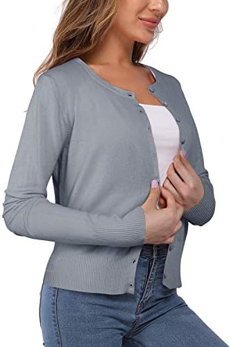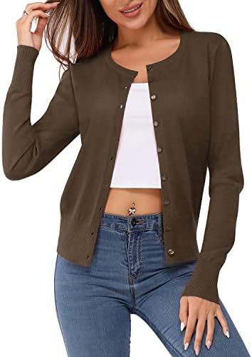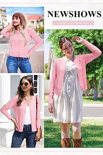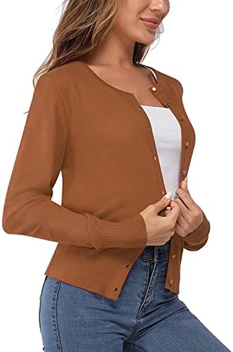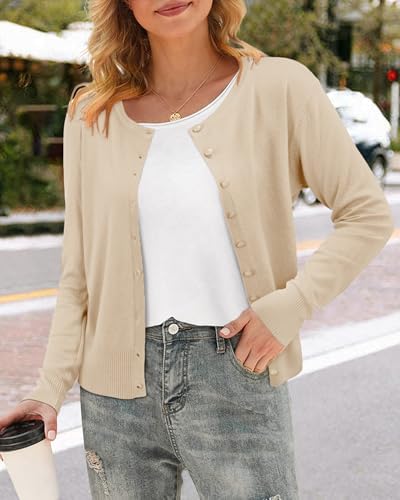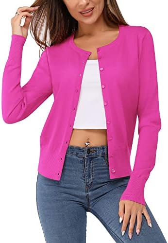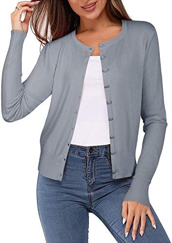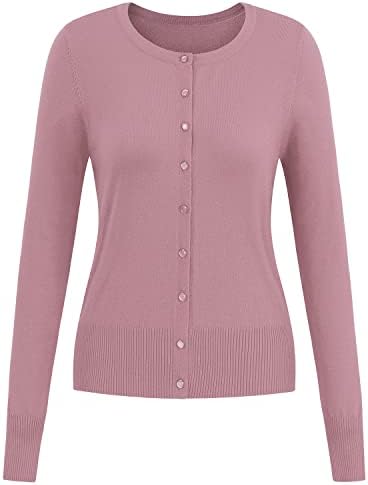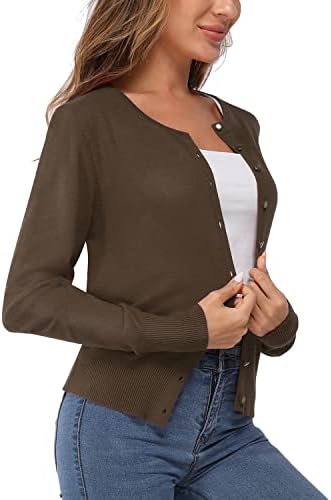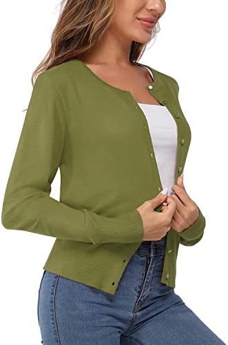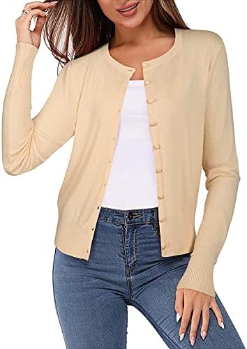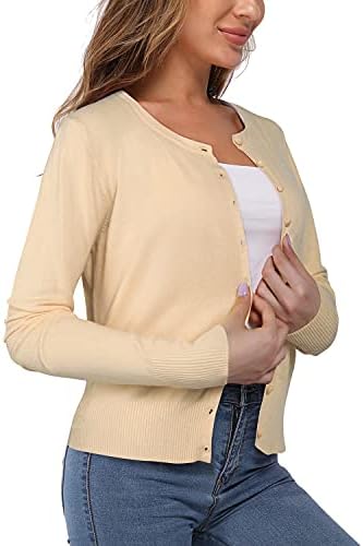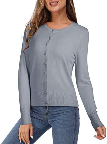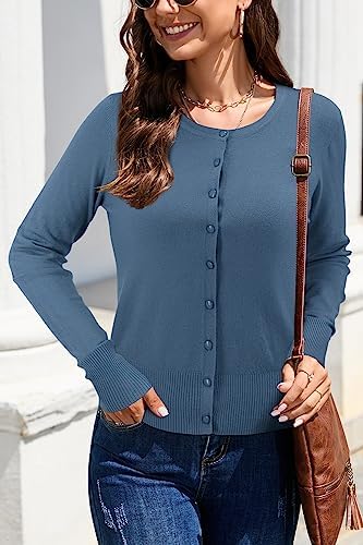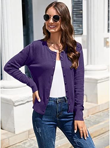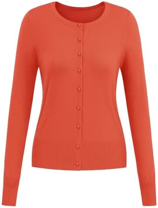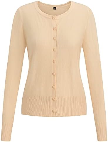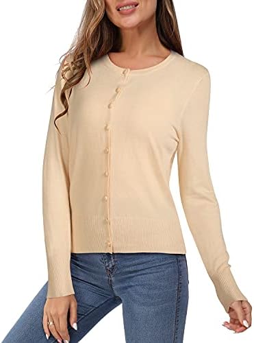 Newshows Women's 2024 Lightweight Button Down Long Sleeve Casual Crew Neck Soft Knit Fall Cardigan Sweater Tops