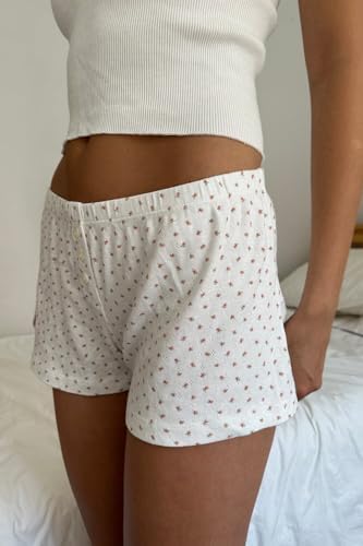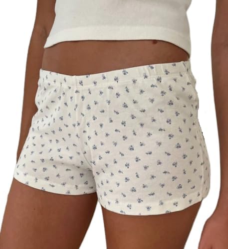 NUFIWI Women Lounge Shorts Floral Print Y2k Low Rise Sexy Micro Shorts Elastic Pajama Bottoms Cute Sleep Shorts