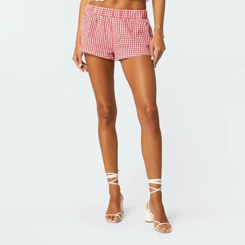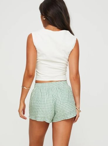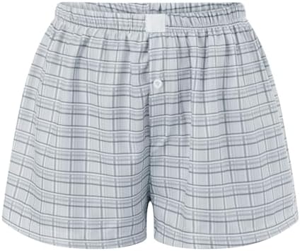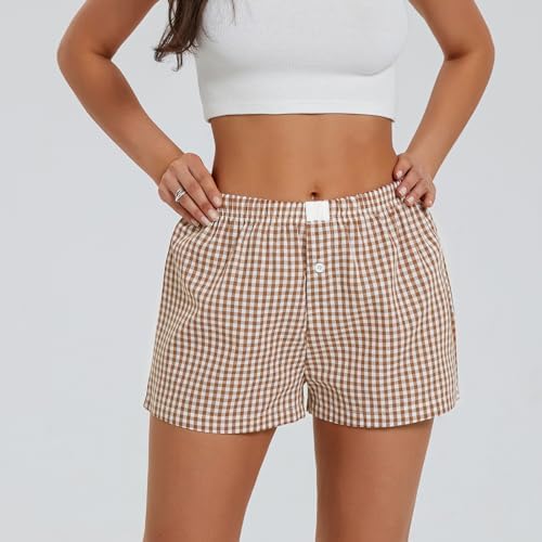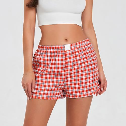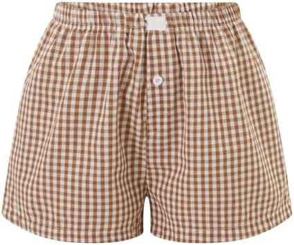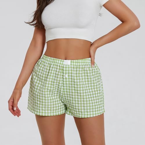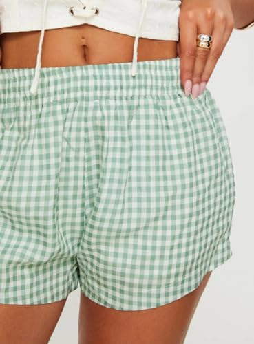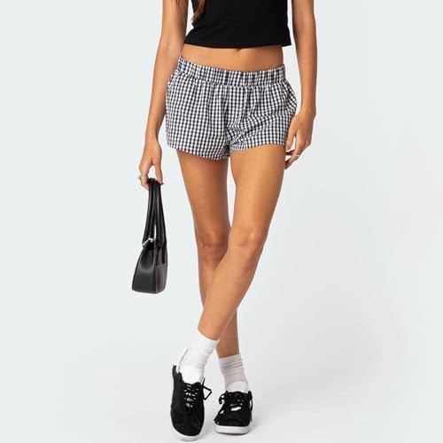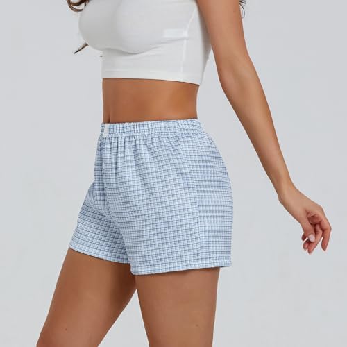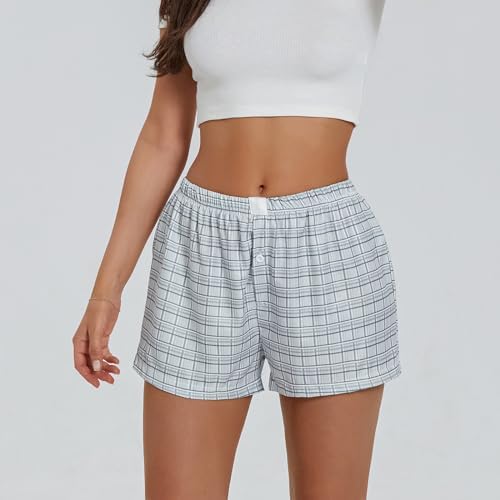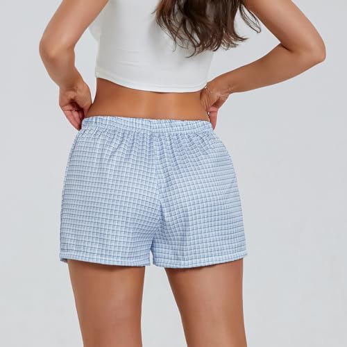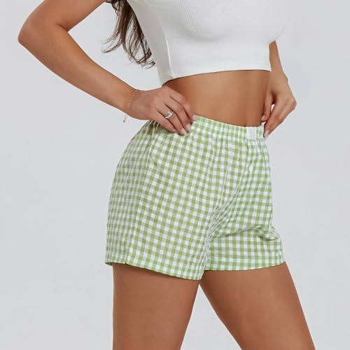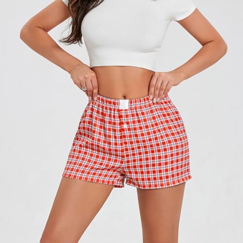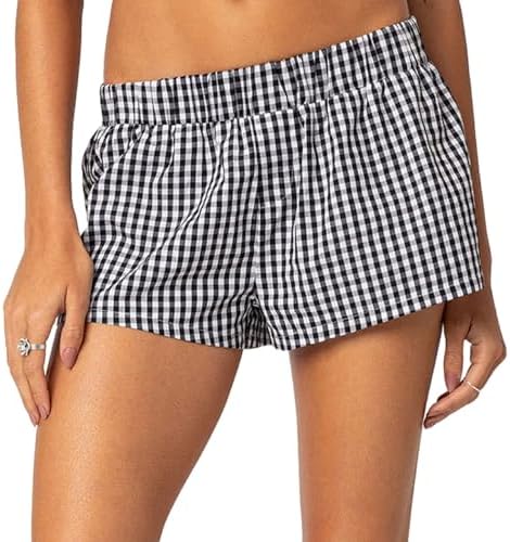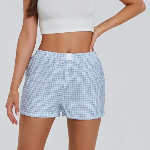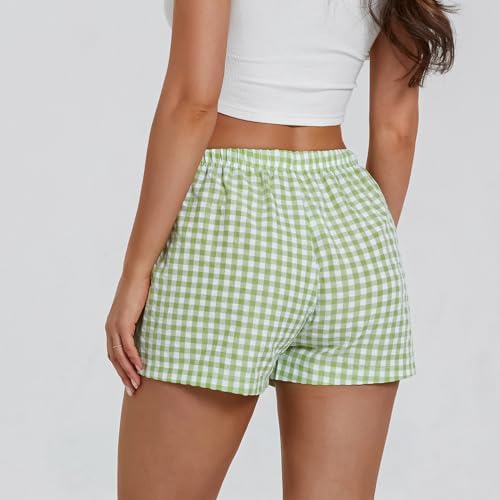 NUFIWI Women Y2k Pajamas Shorts Gingham Cute Pj Short Pants Plaid Lounge Shorts Sleep Bottoms Elastic Boxers Streetwear