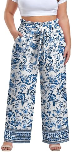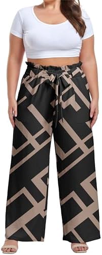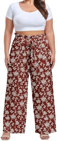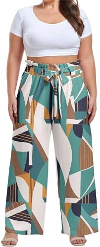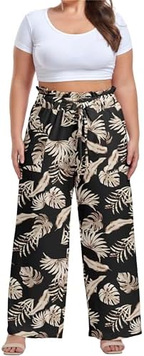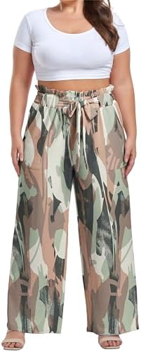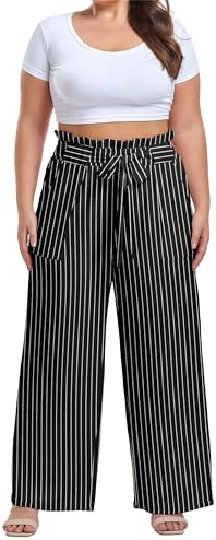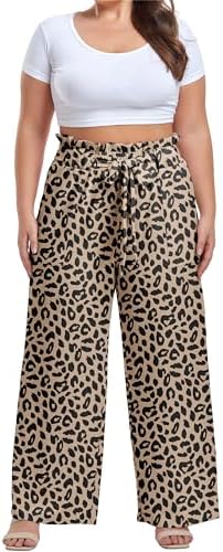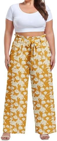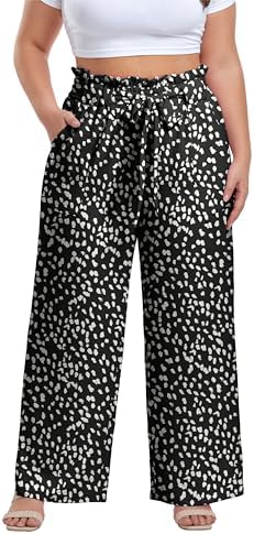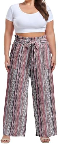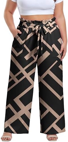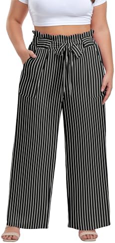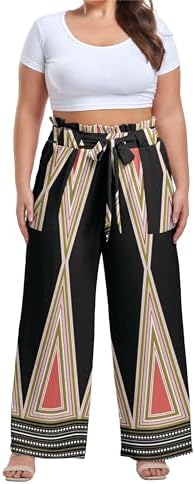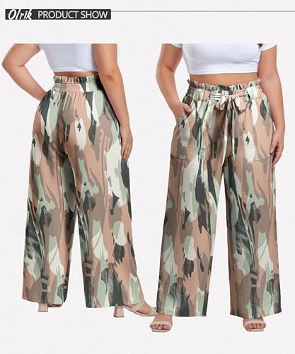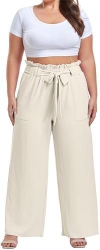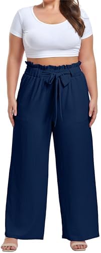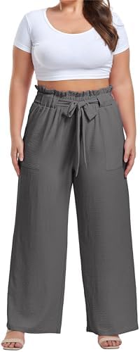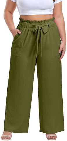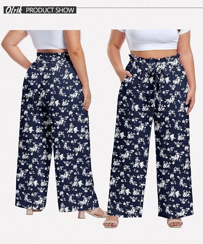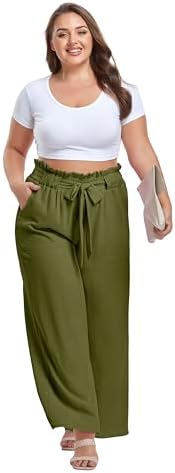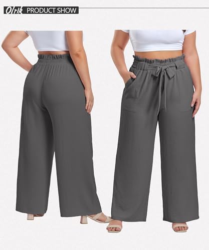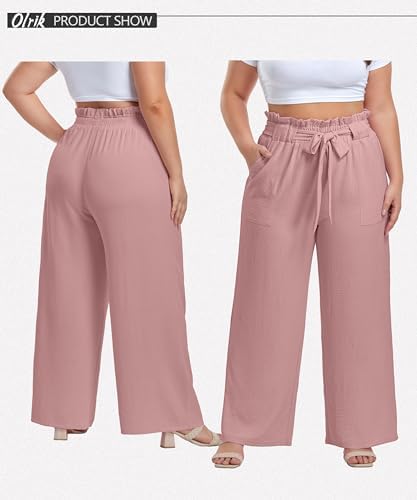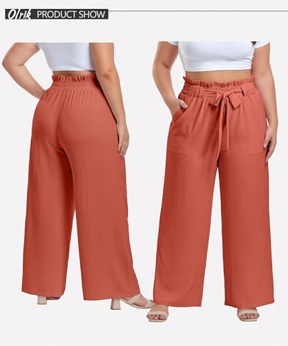 OLRIK Women's Casual Plus Size Pants High Waisted Self-tie Belted Lounge Pants Straight Long Trousers with Pockets