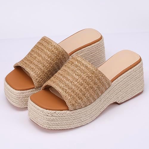 Platform Slip on Espadrille Sandals for Women Wedges Slides Bohemia Sandals Flatform Open Toe Beach Sandals