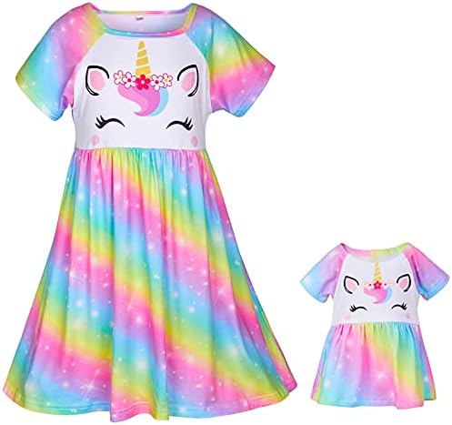 Play Tailor Doll and Girl Matching Nightgown Unicorn Outfit Pajamas Night Dress for Girls and 18" Dolls Clothes