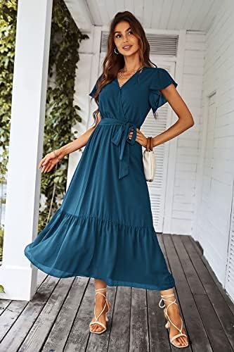 PRETTYGARDEN Women's 2024 Floral Boho Dress Wrap V Neck Short Sleeve Belted Ruffle Hem A-Line Flowy Maxi Dresses