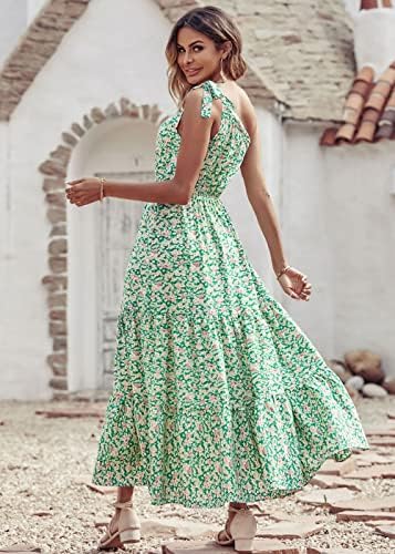 PRETTYGARDEN Womens 2024 Floral Knot One Shoulder Sleeveless Ruffle Hem Flowy Boho Dresses