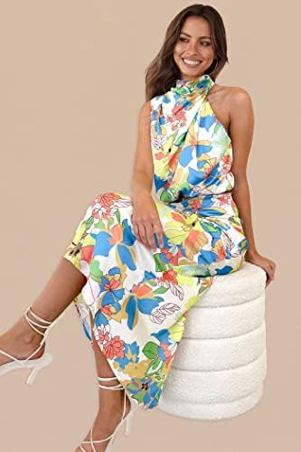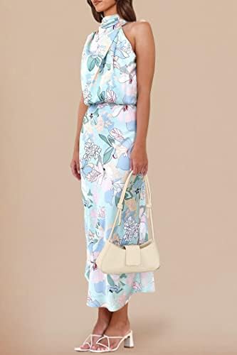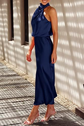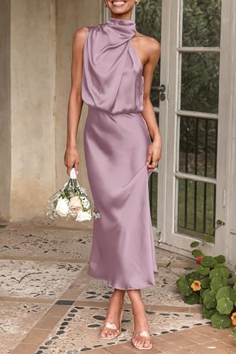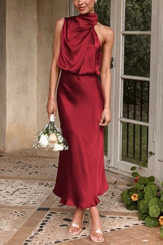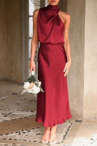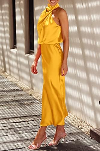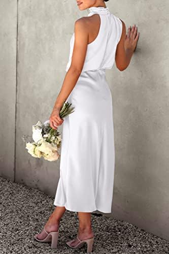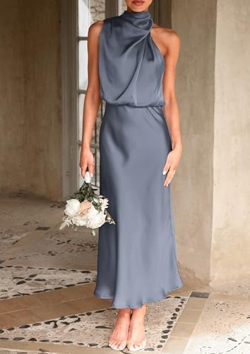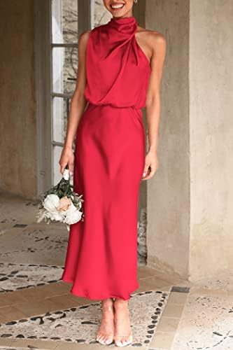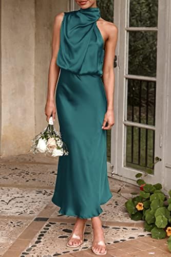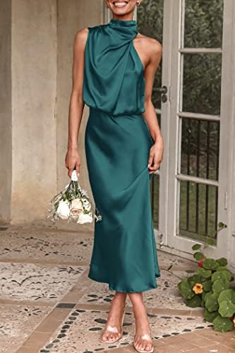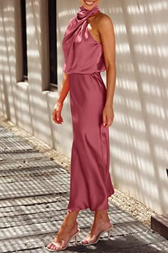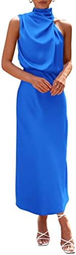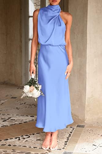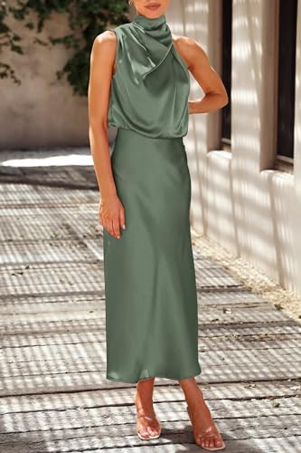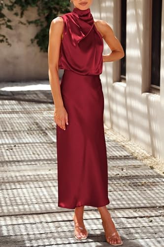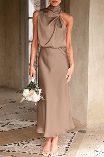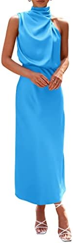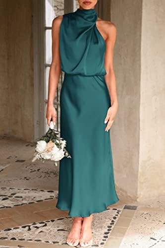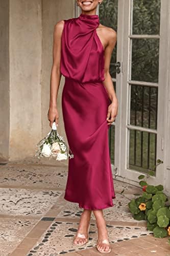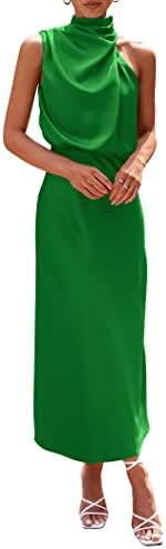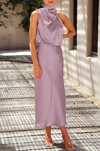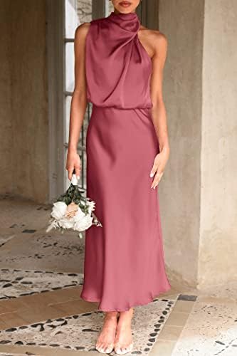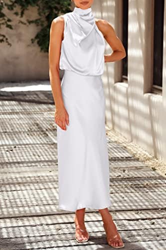 RETTYGARDEN Women Sleeveless Long Satin Dress Elegant Mock Neck Maxi Dresses