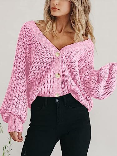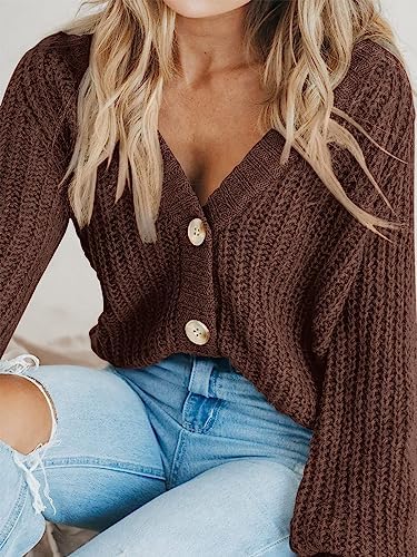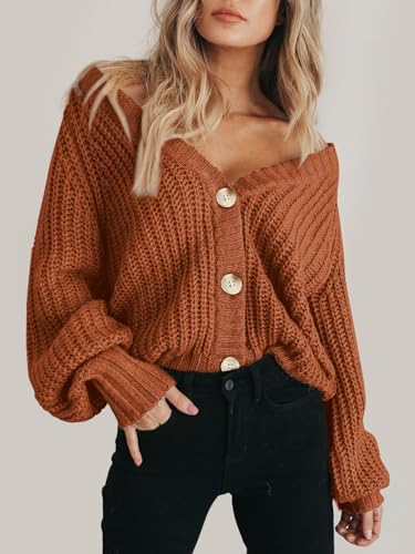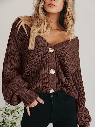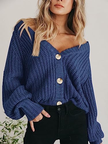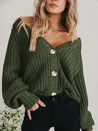 PRETTYGARDEN Womens Open Front Long Sleeve Button Chunky Knit Cardigan Sweater