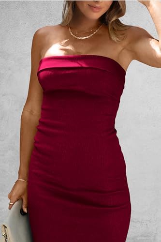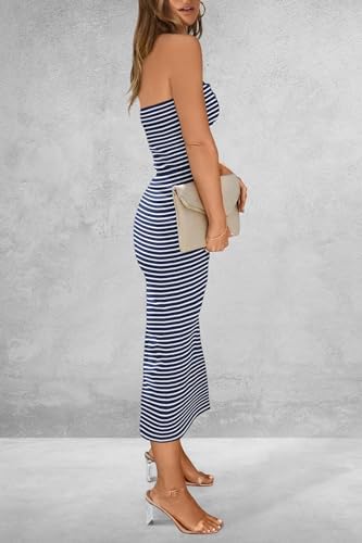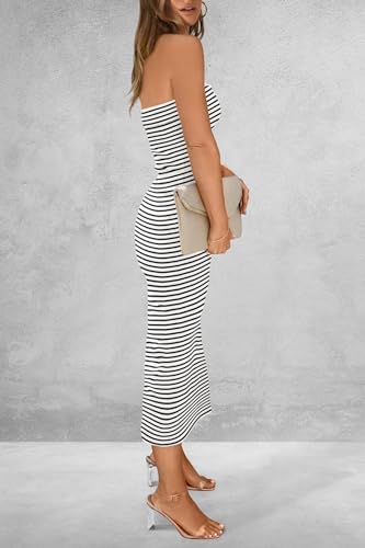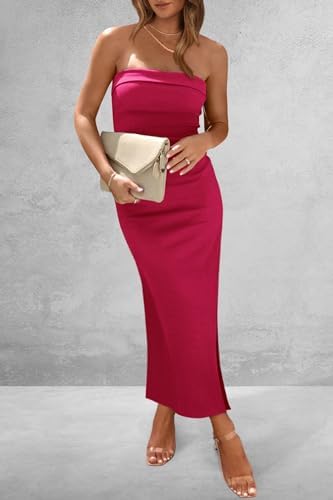 PRETTYGARDEN Womens Summer Bodycon Maxi Tube Dress Ribbed Strapless Side Slit Long Going Out Casual Elegant Party Dresses