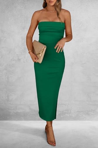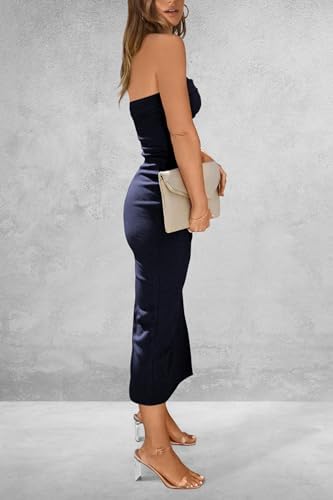 PRETTYGARDEN Womens Summer Bodycon Maxi Tube Dress Ribbed Strapless Side Slit Long Going Out Casual Elegant Party Dresses
