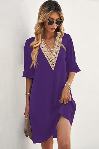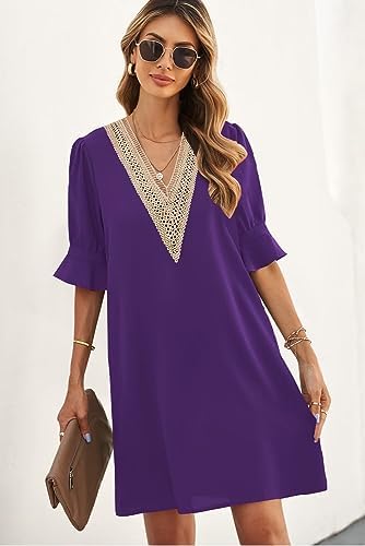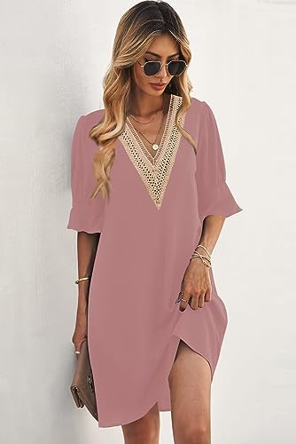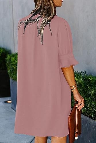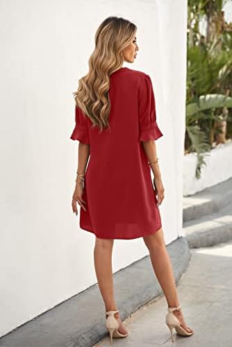 QACOHU Summer Dresses for Women V Neck Ruffle Short Sleeve Casual Shift Dress