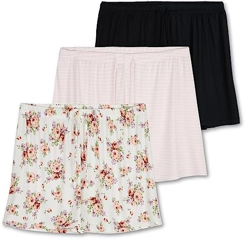 Real Essentials 3 Pack: Womens Ultra-Soft Comfy Stretch Pajama Lounge Shorts Elegant Sleepwear(Available In Plus Size)