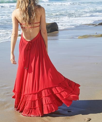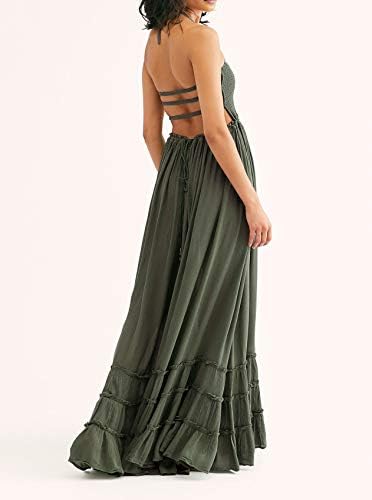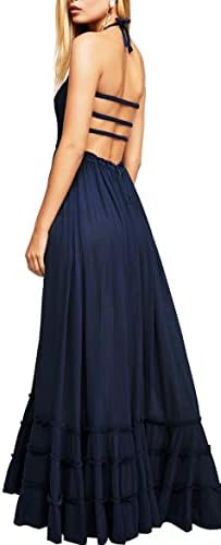 R.Vivimos Womens Summer Cotton Sexy Backless Long Dresses