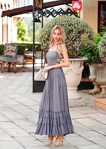 GRACE KARIN Women's 2024 Summer Floral Boho Dress Square Neck Strapped Swing A Line Beach Long Maxi Dress