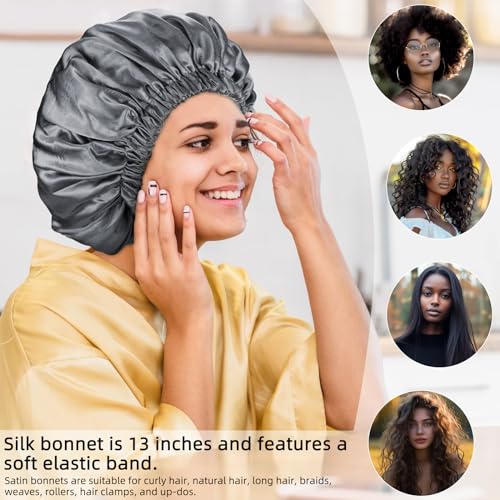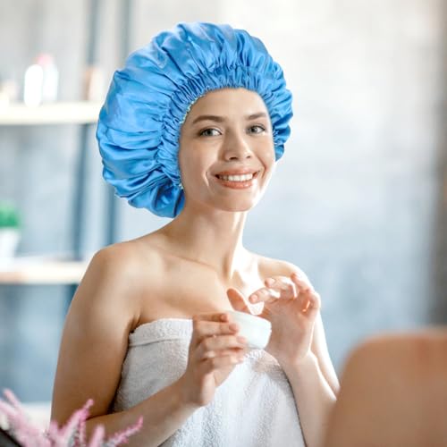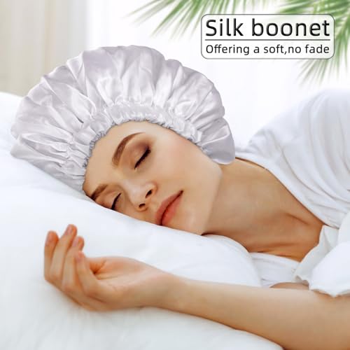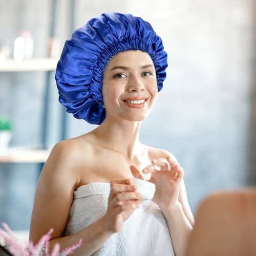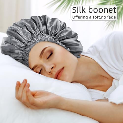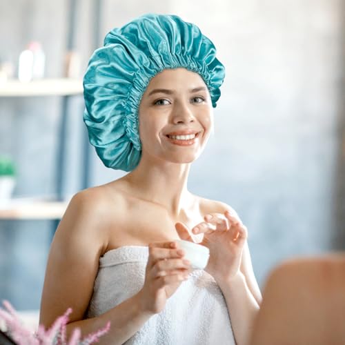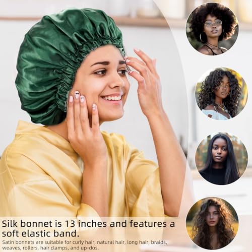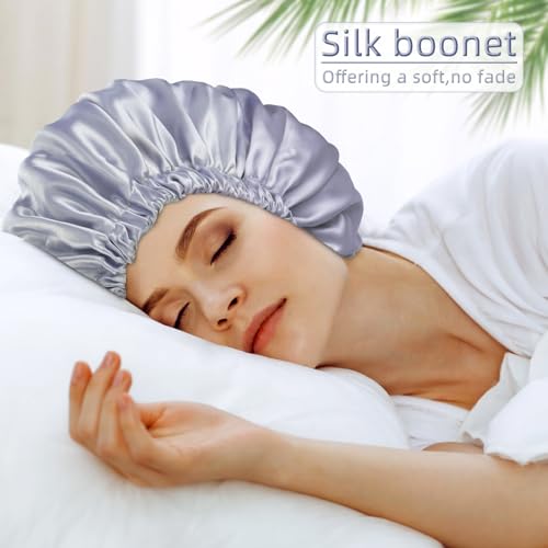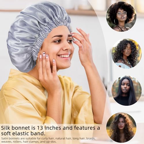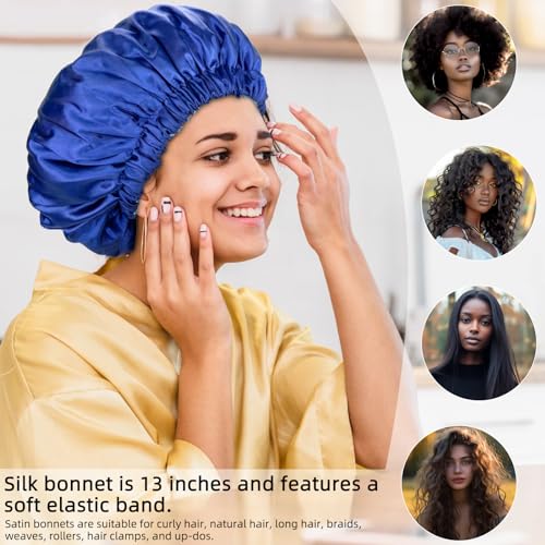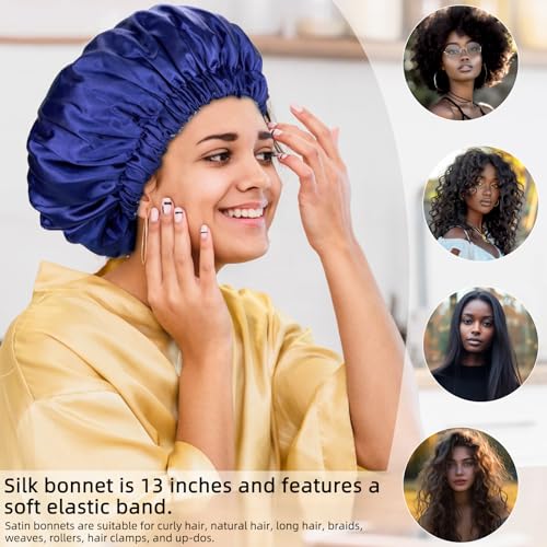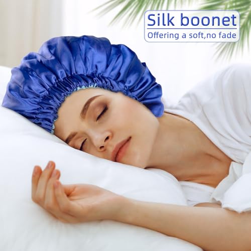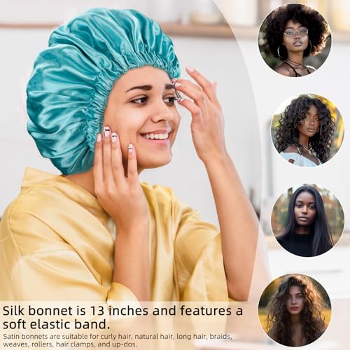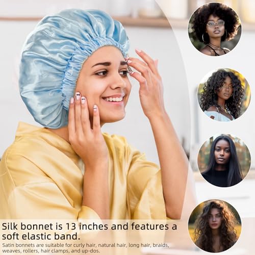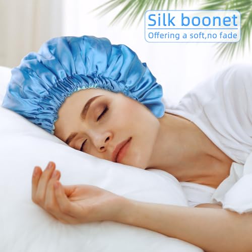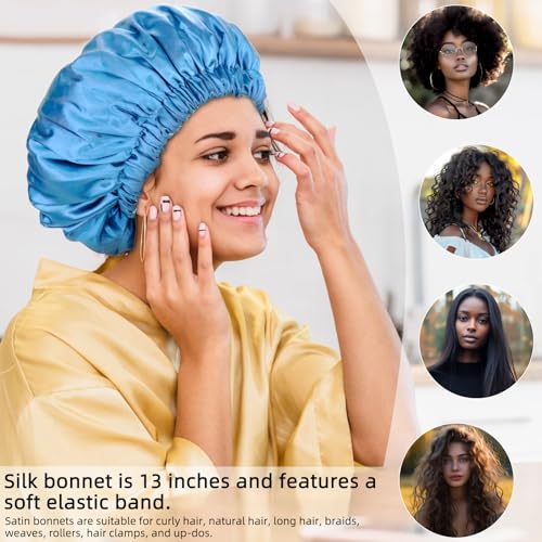 Satin Bonnet Silk Bonnet Hair Bonnet for Sleeping-Slouchy Beanie Hat Satin Sleep Cap for Women's Natural & Curly Hair(Blue zircon)