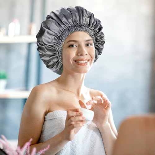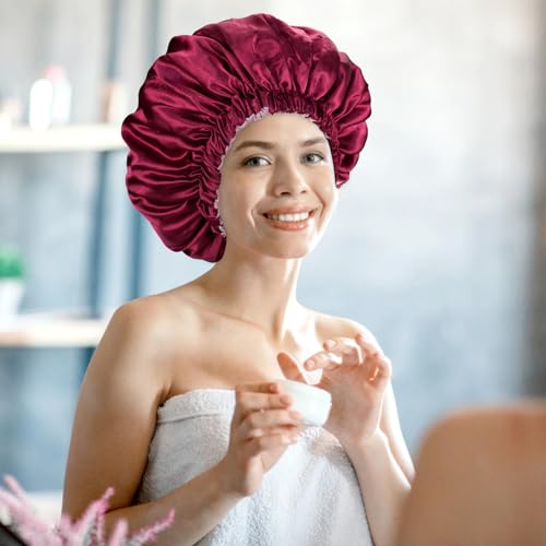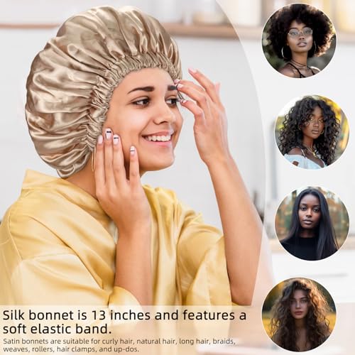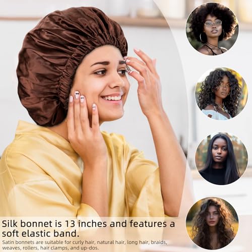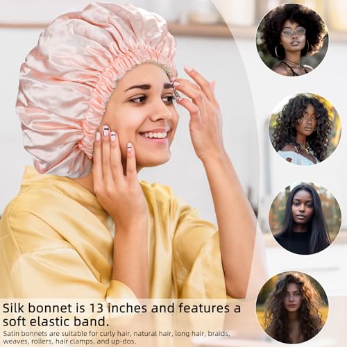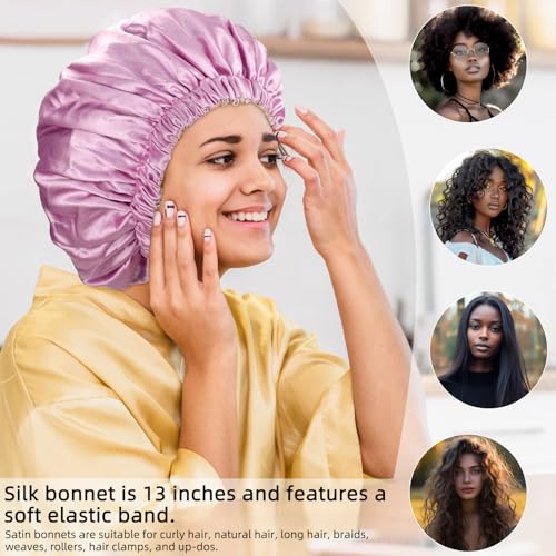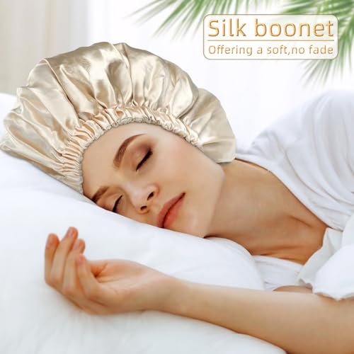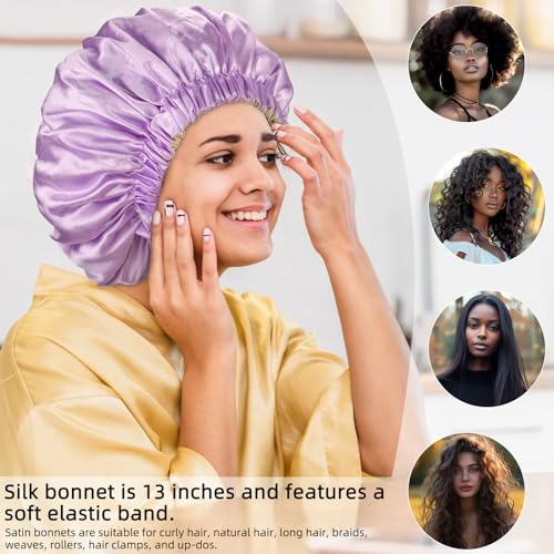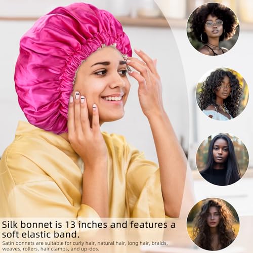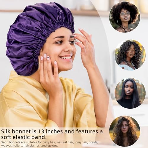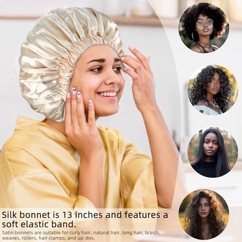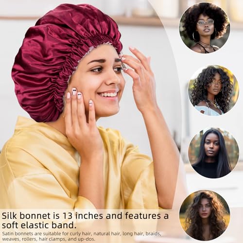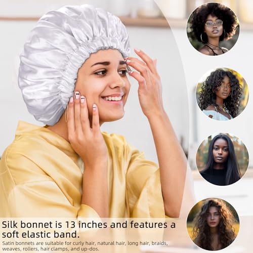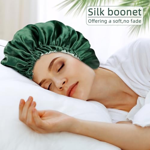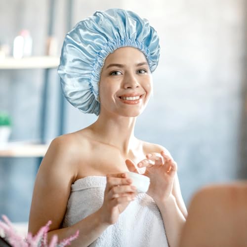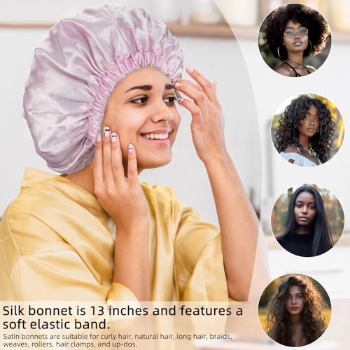 Satin Bonnet Silk Bonnet Hair Bonnet for Sleeping-Slouchy Beanie Hat Satin Sleep Cap for Women's Natural & Curly Hair(Blue zircon)