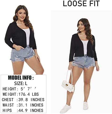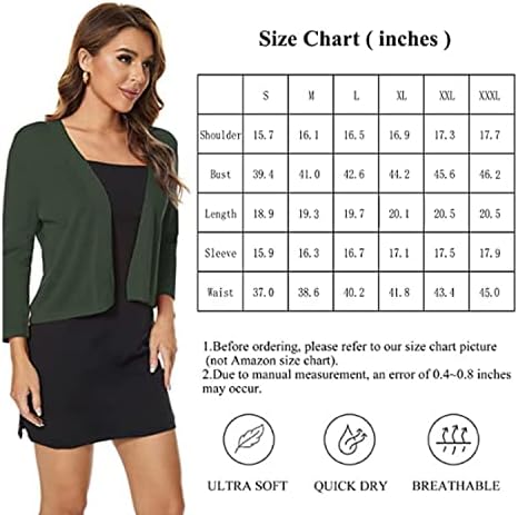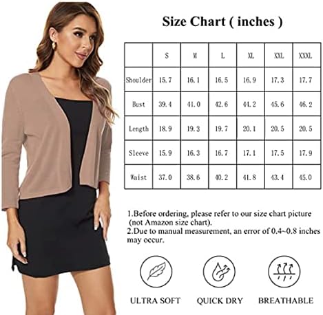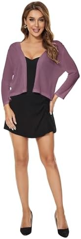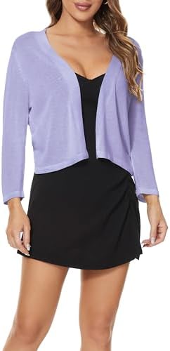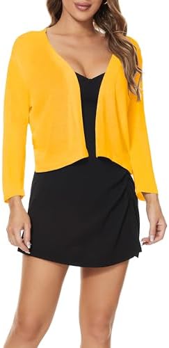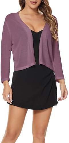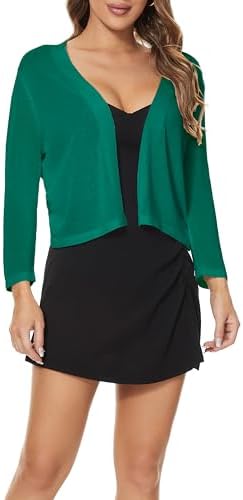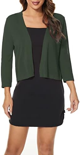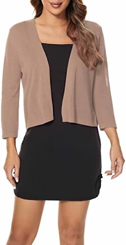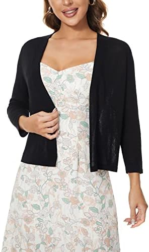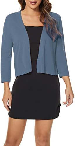 Satuun Women's 3/4 Sleeve Shrugs Lightweight Open Front Cropped Cardigan for Women
