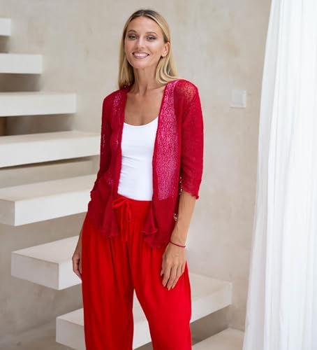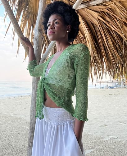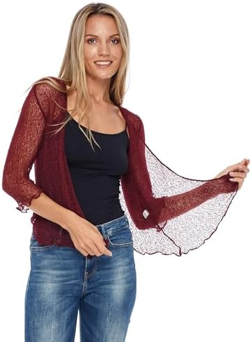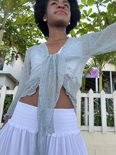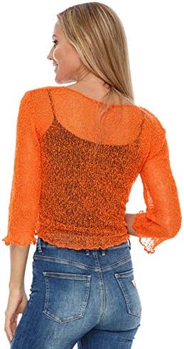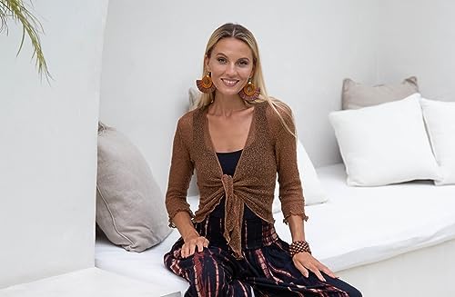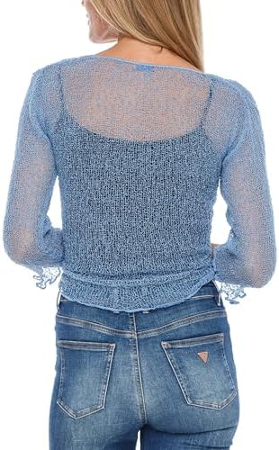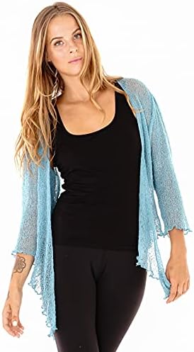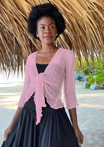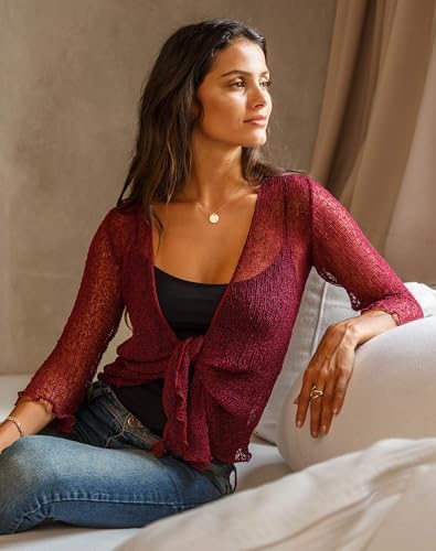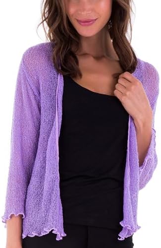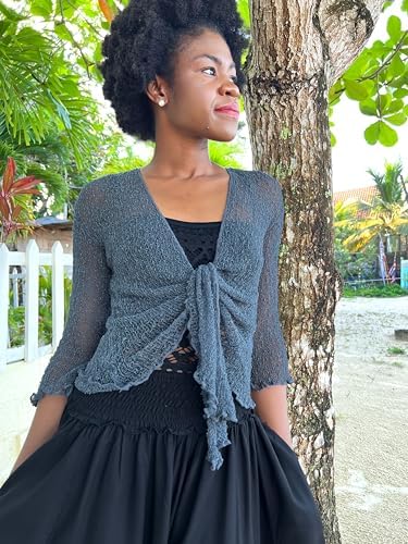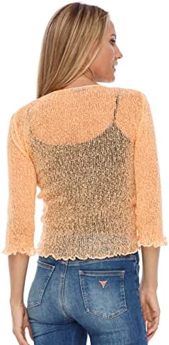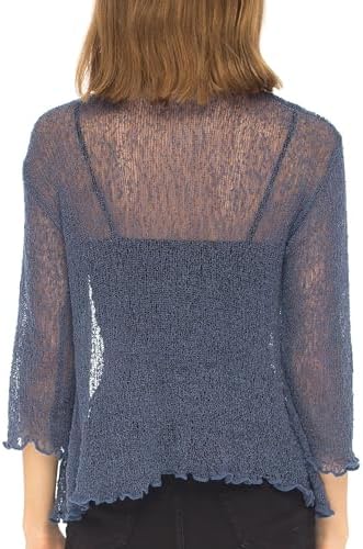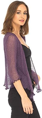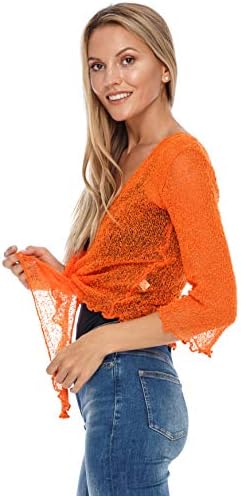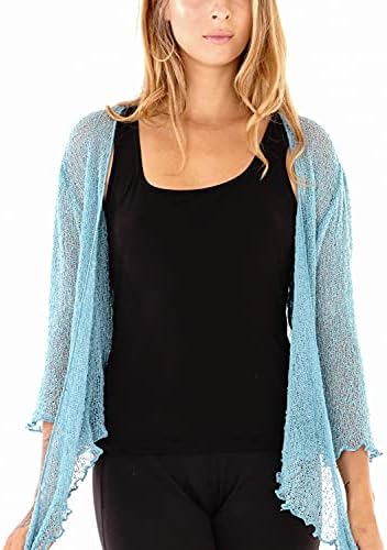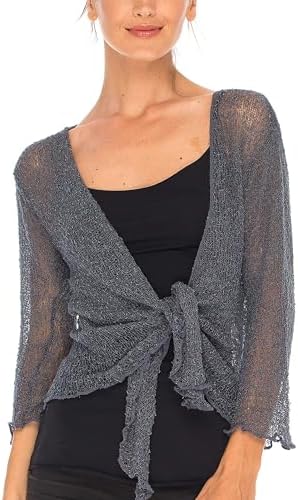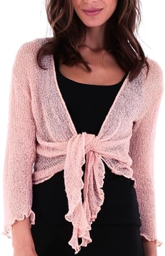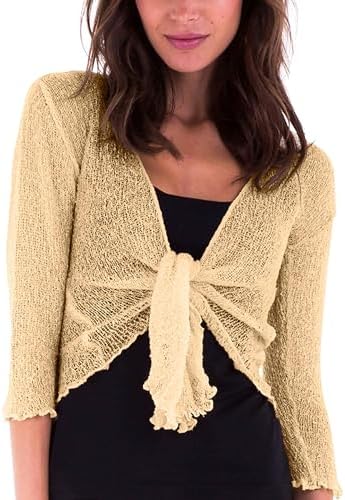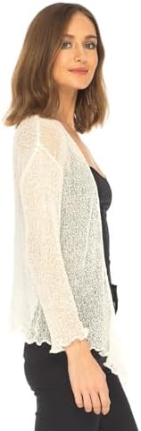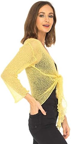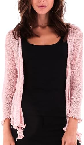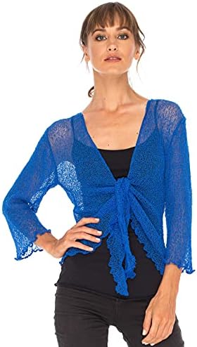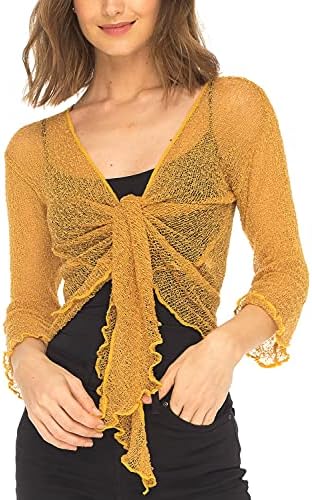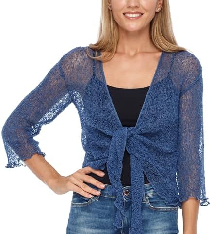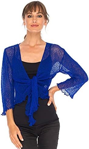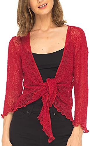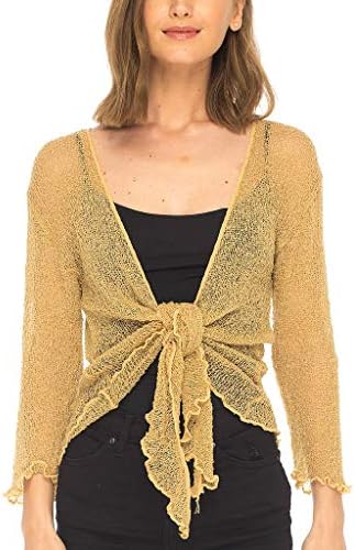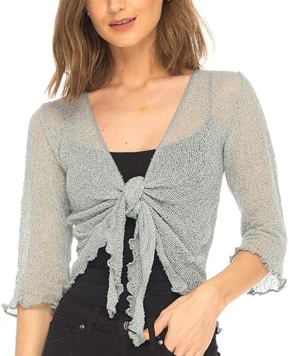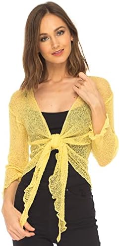 SHU-SHI Womens Sheer Shrug Tie Top Open Front Cardigan Lightweight Knit
