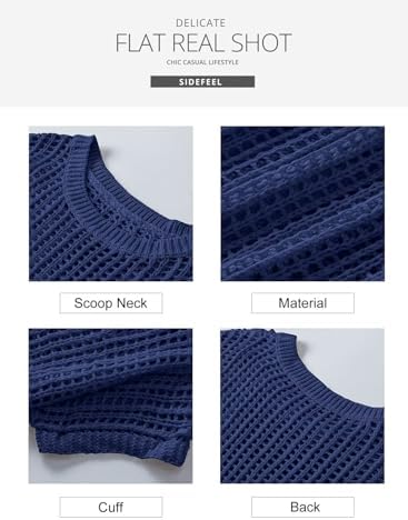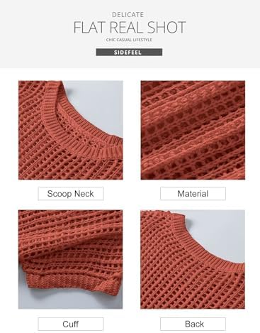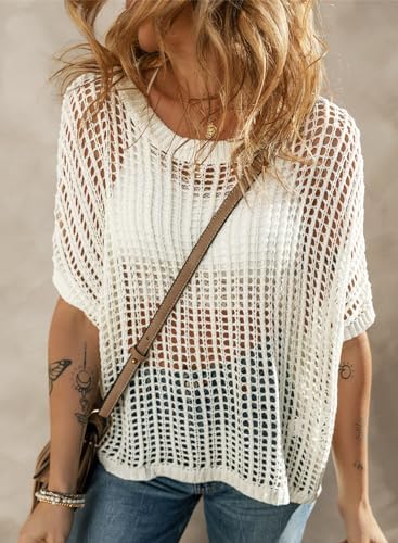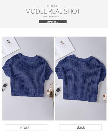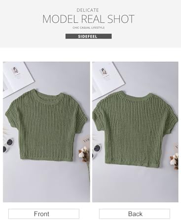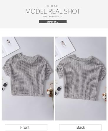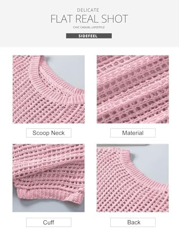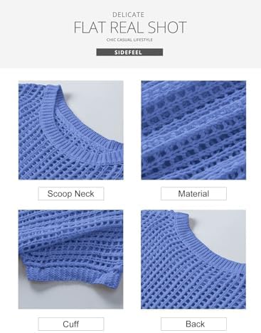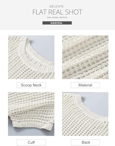 Sidefeel Women's Crochet Tops Short Sleeve Sweater 2024 Fashion Hollow Out Scoop Neck Pullover Knit Tops Cover Ups