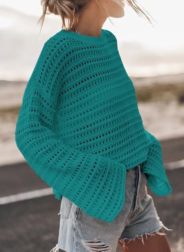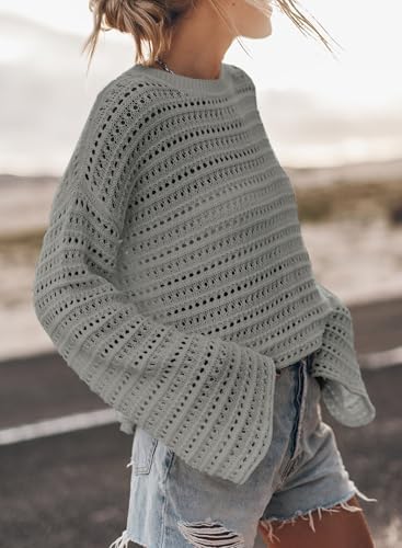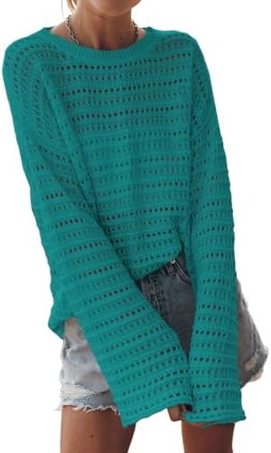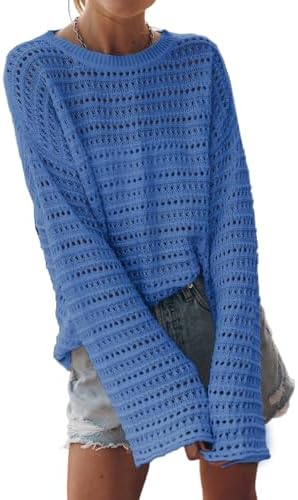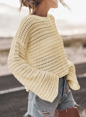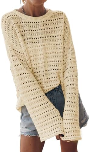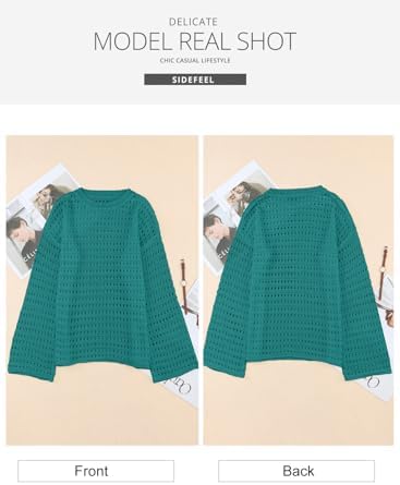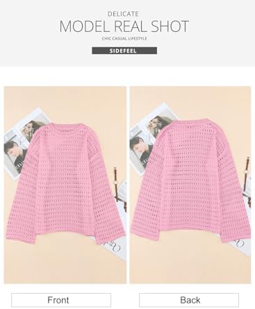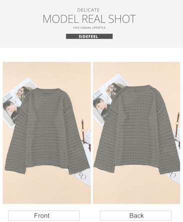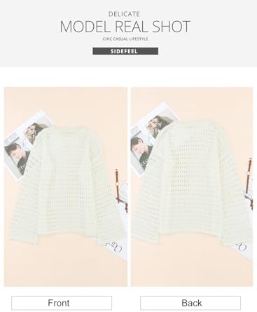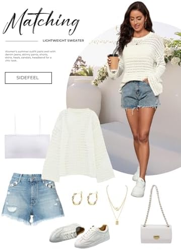 Sidefeel Womens Summer Outfit 2024 Lightweight Sweater Crochet Hollow Out Knit Spring Clothes