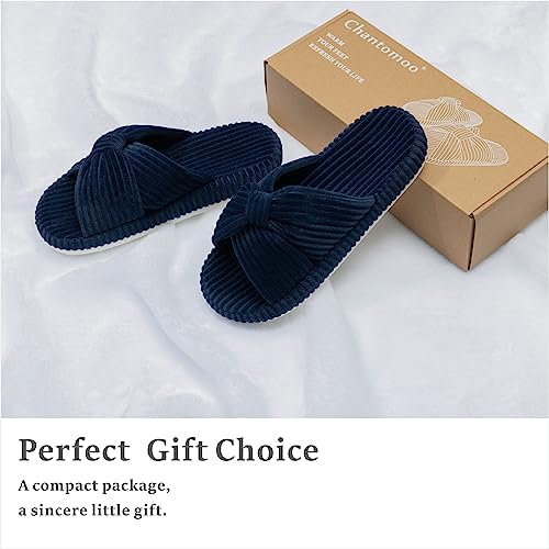 Slippers for Women Memory Foam House Bedroom Corduroy Bow Crossbands Slide Slipper Shoes Comfy Trendy Gift Slippers