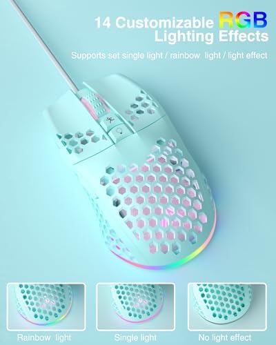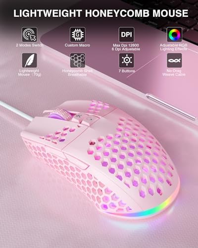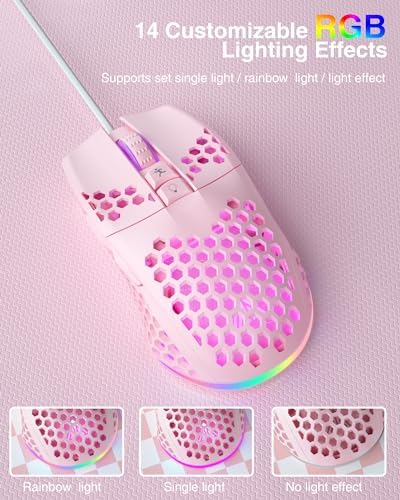 SM900 White Wired Gaming Mouse with Honeycomb Shell,12800 DPI,7 Programmable Buttons,Lightweight Gaming Mice Ergonomic Computer Mouse Gaming for Windows/PC/Mac/Laptop Gamer