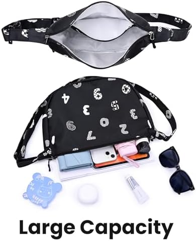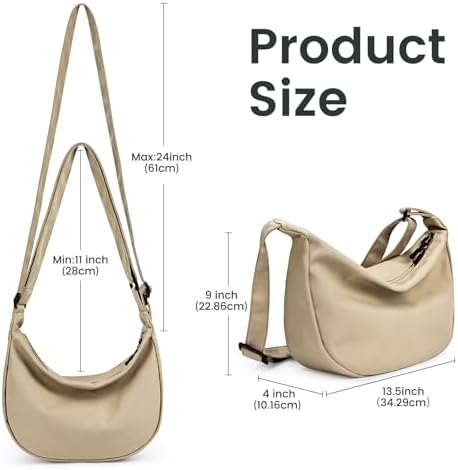 Small Sling Crossbody Bag for Women Men Trendy, Mini Crescent Bag with Adjustable Strap, 2 Zippers Lightweight Nylon Bag