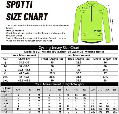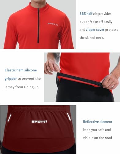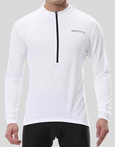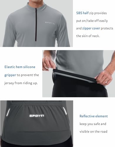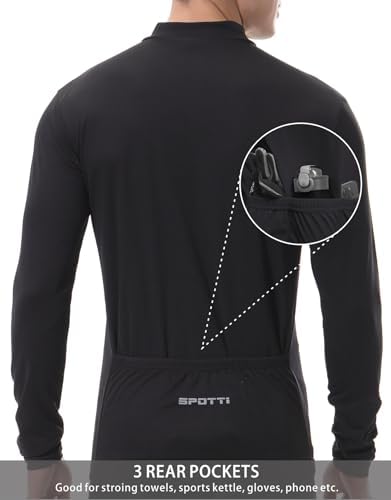 Spotti Men's Cycling Bike Jersey Long Sleeve with 3 Rear Pockets - Moisture Wicking, Breathable, Quick Dry Biking Shirt