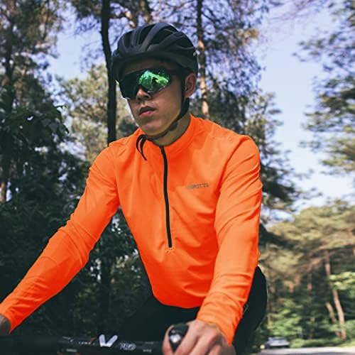 Men's Cycling Jersey Long Sleeve Biking Shirt with 3+1 Zipper Pocket Breathable Quick Dry Bicycle Jersey