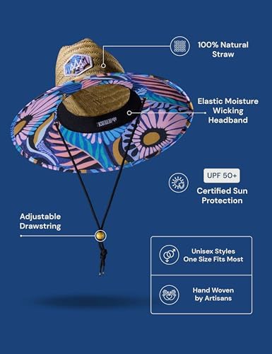Straw Hat for Men & Women | Lifeguard Hat, Beach Hat & Sun Hat | UPF 50+ Wide Brim for Sun Protection | One Size | Hemlock